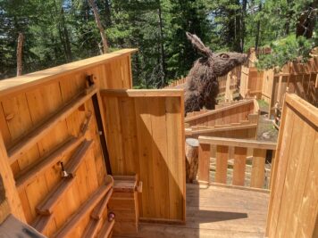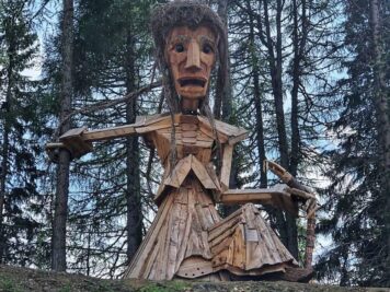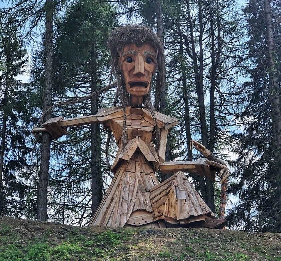 Da non perdere la grandissima aquila in legno con apertura alare di 12 metri, collocata accanto al rifugio Baita Cuz, cui si aggiungono il branco di cinque lupi giganti, la scultura raffigurante la temibile bregostana delle leggende ladine, e tutte le altre meravigliose installazioni che popolano il Sentiero Incantato e non solo.