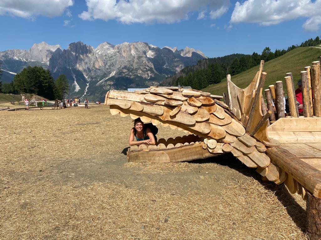 Al Buffaure la bellezza ha fatto centro! Non solo la meraviglia delle montagne più belle a far da cornice sullo sfondo, ma anche tante incredibili installazioni artistiche in legno dell’artista Franz Avancini: panchine, sdraio sagomate e troni giganti, perfettamente integrati nell’ambiente naturale, per rendere ancora più piacevole il panorama.