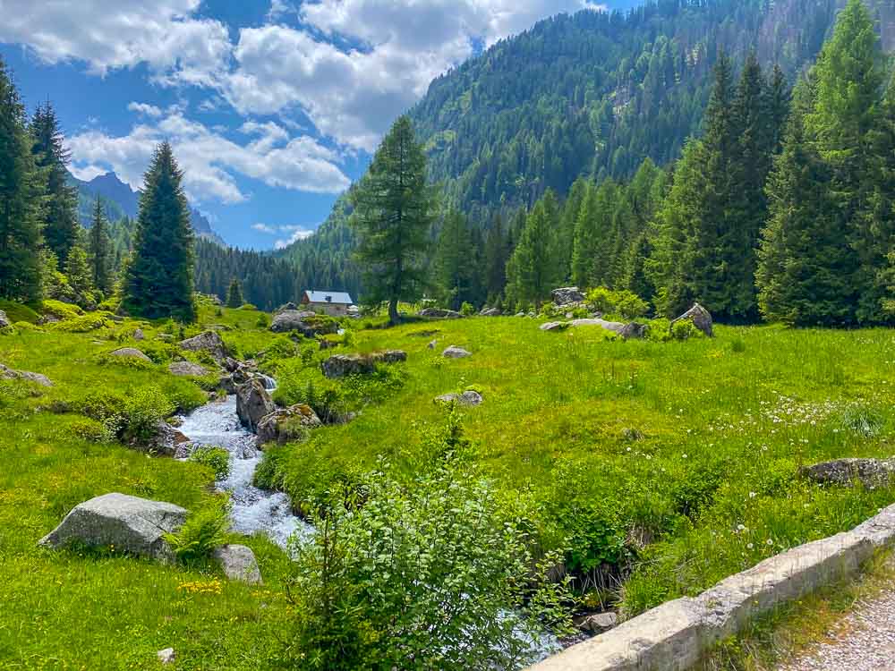 bello e facile anche il sentiero di fondovalle che vi porta a scoprire tutte le segherie fino a salire, costeggiando il torrente Rabies, fino alla malga Stablasolo