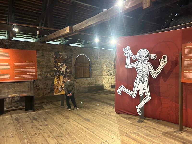 All’interno del castello alcuni spazi, come le stanze nel mastio, sono riservate alle mostre. Noi abbiamo visto un’interessante mostra su credenze popolari, alchimia e farmacia nel medioevo.