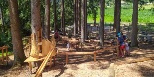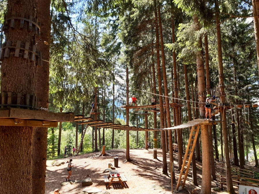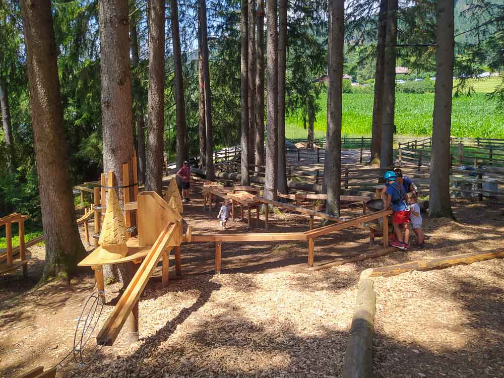 Ci troviamo nei pressi del Lago d’Issengo, nel comune di Falzes, a pochi km da Brunico, in Val Pusteria. Qui tra gli alberi e al fresco si snodano i precorsi avventura di diverse difficoltà, da quelli adatti ai bambini più piccoli (già dai 2 anni e mezzo è possibile arrampicare!), fino ad arrivare a quelli più complessi, situati anche a 20 metri dal terreno, perfetti per i ragazzi e gli adulti più spericolati. Parola d’ordine: non soffrire di vertigini!
