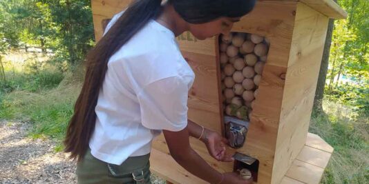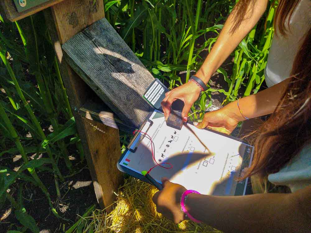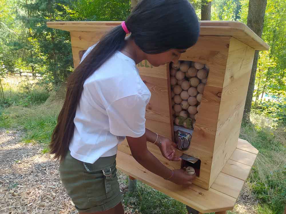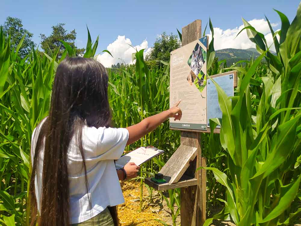 In cambio si riceve un quiz degli animali, con enigmi e giochi da risolvere presso le diverse stazioni che vanno cercate all’interno del labirinto. Ad ogni stazione corrisponde un diverso animale che popola i boschi dell’Alto Adige: una scheda informativa da leggere assieme fornisce informazioni e curiosità sulla vita e le abitudini dell’animale in questione. Vi è poi un gioco da risolvere per poter rispondere alla domanda presente sul quiz. Alle fine si mettono insieme tutte le soluzioni per formare un codice finale. Se corretto riceverete un premio che noi abbiamo trovato davvero… geniale!