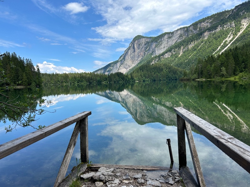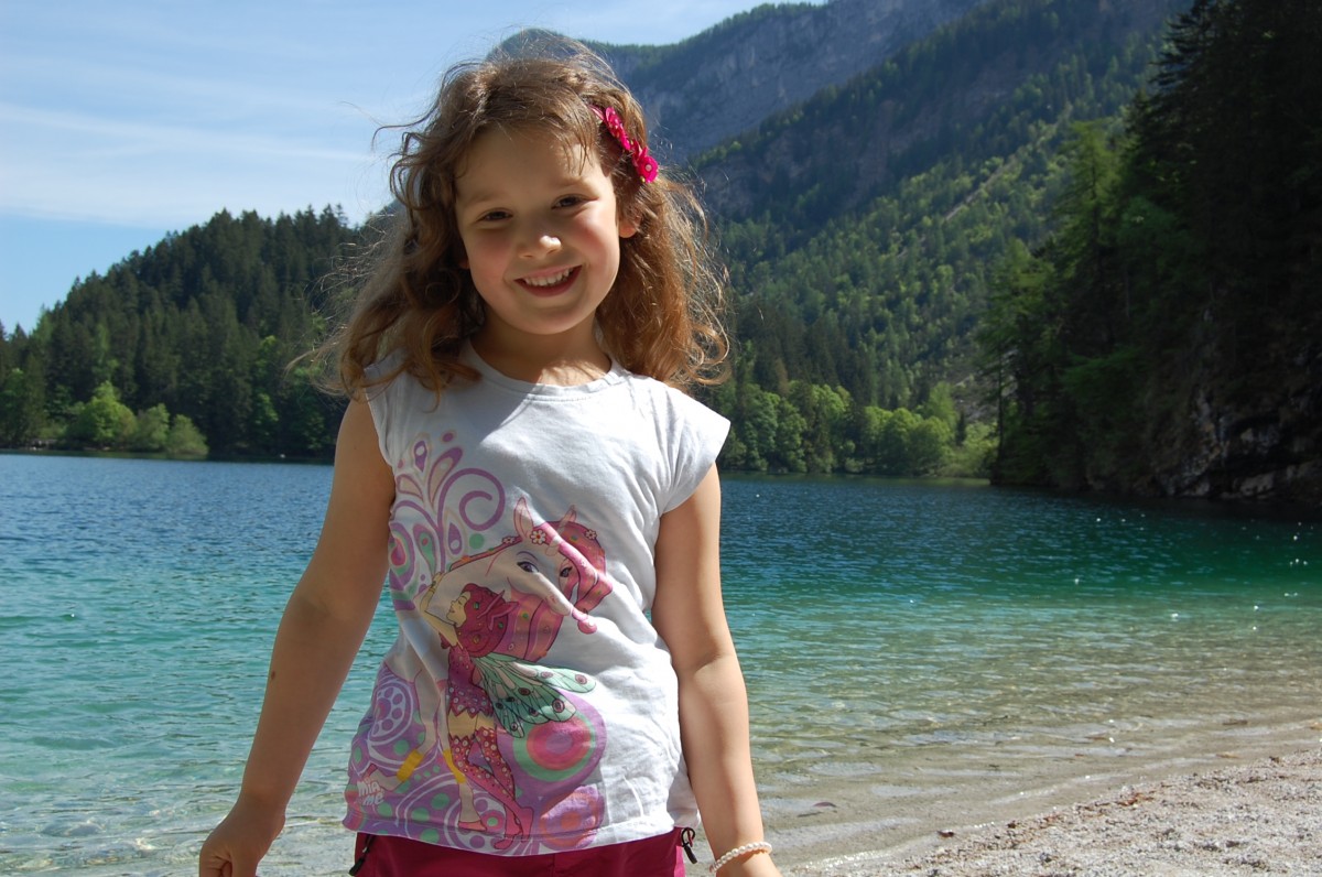 La passeggiata intorno al lago è fattibile senza difficoltà in un’oretta. Se però avete il passeggino qui dovete tornare indietro: il sentiero si snoda prima sulla spiaggia di ghiaia e poi sale, per l’ultimo tratto, sullo sperone di roccia, con un pezzo a gradoni e con cordini per tenersi (niente di difficile per i bambini, basta facciate un po’ di attenzione, specie se ha appena piovuto ed il terreno è molto bagnato e scivoloso).