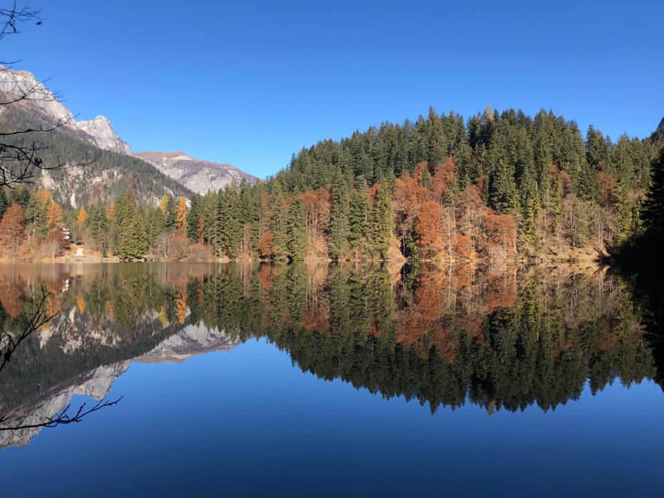 Il lago di Tovel in autunno, quando il turismo di massa ha ormai abbandonato le sue rive, è semplicemente meraviglioso. Le foglie colorate, le montagne rosse e gialle che si specchiano nelle sue acque, la calma che contraddistingue questa stagione… la passeggiata acquisisce tinte quasi magiche che conquistano tutti: dai nonni, ai bambini, passando per i genitori.