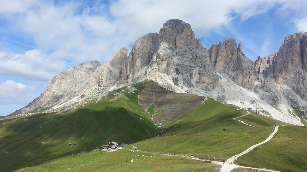 Questa passeggiata nella splendida Val di Fassa è nel nostro cuore. L’abbiamo sperimentata più volte con i bambini che di solito qui camminano senza troppe storie, incantati dalle marmotte e dal panorama. Si mangia stupendamente con piatti che non solo sono buoni, ma anche bellissimi! Si parte da Campitello e in pochi minuti con la funivia del Col Rodella (orari e tariffe QUI) si arriva a quota 2400 metri, al cospetto di una corona di montagne fuori dal comune: Sassopiatto, Sassolungo, il gruppo Sella con il magnifico Piz Boè e la maestosa Marmolada, la regina incontrastata del panorama con il suo ghiacciaio scintillante.