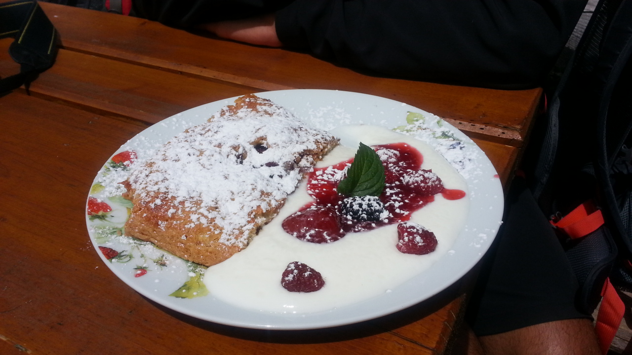 Noi però siamo scesi ancora per 5 minuti (ci si può arrivare anche direttamente, seguendo precedentemente le indicazioni sul sentiero) alla malga omonima perché ci avevano detto che è da non perdere per gli amanti della buona cucina. Inutile dire che avevano ragione: mille prelibatezze ad ottimi prezzi, quantità abbondanti e qualità eccelsa, come solo le materie autoprodotte possono avere. Abbiamo concluso il super pranzo con strudel di ricotta e strudel di albicocche deliziosi, accompagnati da uno yogurt strepitoso e qualche frutto di bosco.