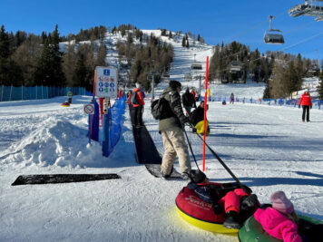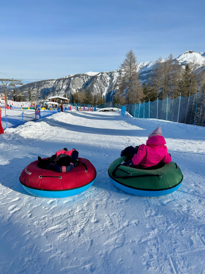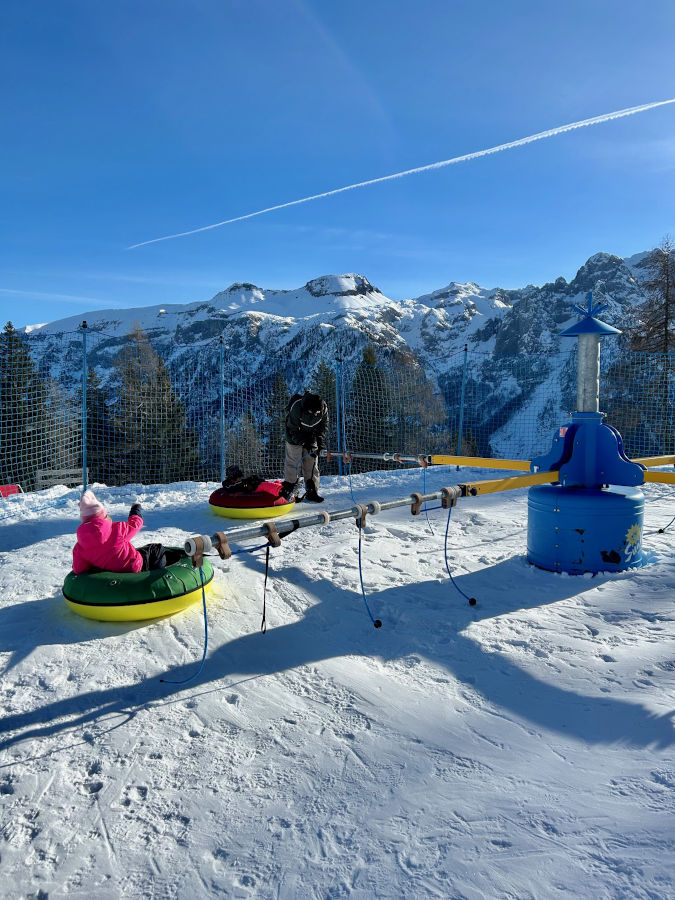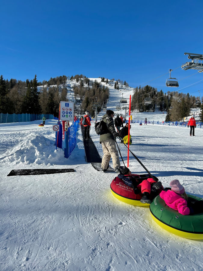 Tutta la zona è ideale per i bambini che vogliono cimentarsi per la prima volta sugli sci. Due comodi tapis roulant conducono fino in cima al campo pratica dove, da soli o in compagnia dei bravissimi maestri, si possono sperimentare le prime discese in tutta sicurezza. A disposizione c’è anche lo Snowpark Easy Line, una pista di snow tubing per le discese in gommone e una “giostra carousel”, con ingresso gratuito (basta una cauzione di 10 euro per la ciambella).