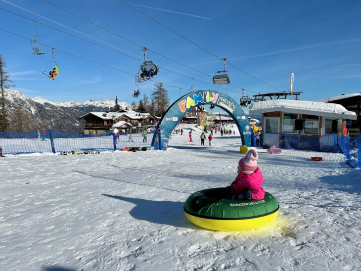 Questo parco ci è davvero piaciuto molto! Prima di tutto per la sua posizione. Un’area ampia e soleggiata, attorno alla quale non mancano punti di ristoro e ristoranti: comodissimo per chi ha bambini. In secondo luogo sono tanti anche i servizi dei quali si può usufruire: dalla scuola di sci a un efficientissimo kinderland sulla neve, passando per la divertente animazione presente durante tutta la giornata! Il Family Park Folgarida si trova nell’area del Malghet Aut, dove ci sono scuole sci e numerosi punti di ristoro. Insomma, una zona ideale per chi vuole trascorrere una vacanza sulla neve coi bambini tenendo sullo sfondo le Dolomiti di Brenta.