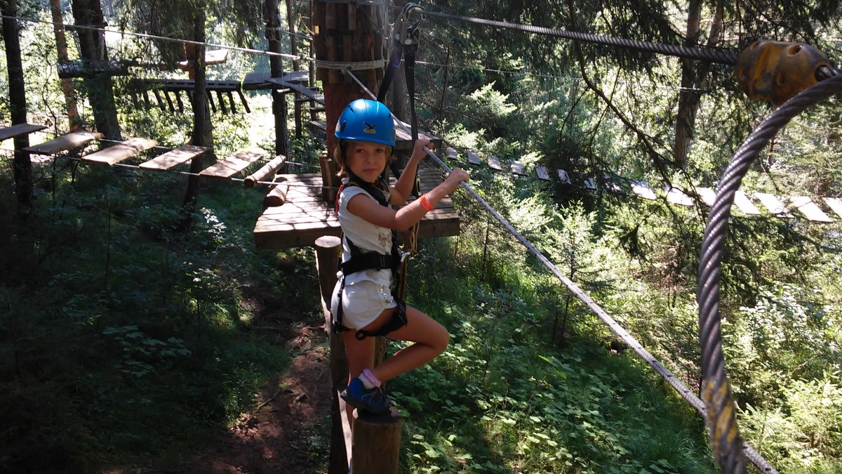 Ci troviamo nei pressi del Lago d’Issengo, nel comune di Falzes, a pochi km da Brunico, in Val Pusteria. Qui tra gli alberi e al fresco si snodano i precorsi avventura di diverse difficoltà, da quelli adatti ai bambini più piccoli (già dai 2 anni e mezzo è possibile arrampicare!), fino ad arrivare a quelli più complessi, situati anche a 20 metri dal terreno, perfetti per i ragazzi e gli adulti più spericolati. Parola d’ordine: non soffrire di vertigini!