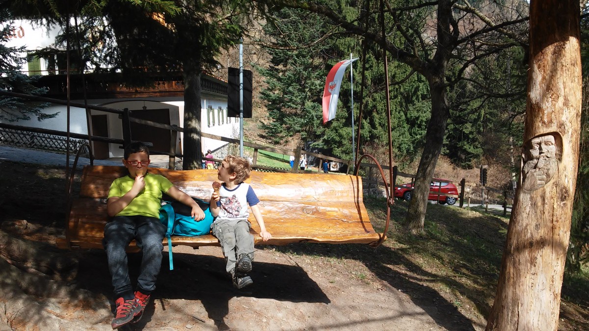In dieci minuti si arriva al Gasthof Huber, un maso con diversi tavoli all’esterno, ideale per godere dei caldi raggi di sole autunnali. Qui i bambini possono giocare liberamente e…