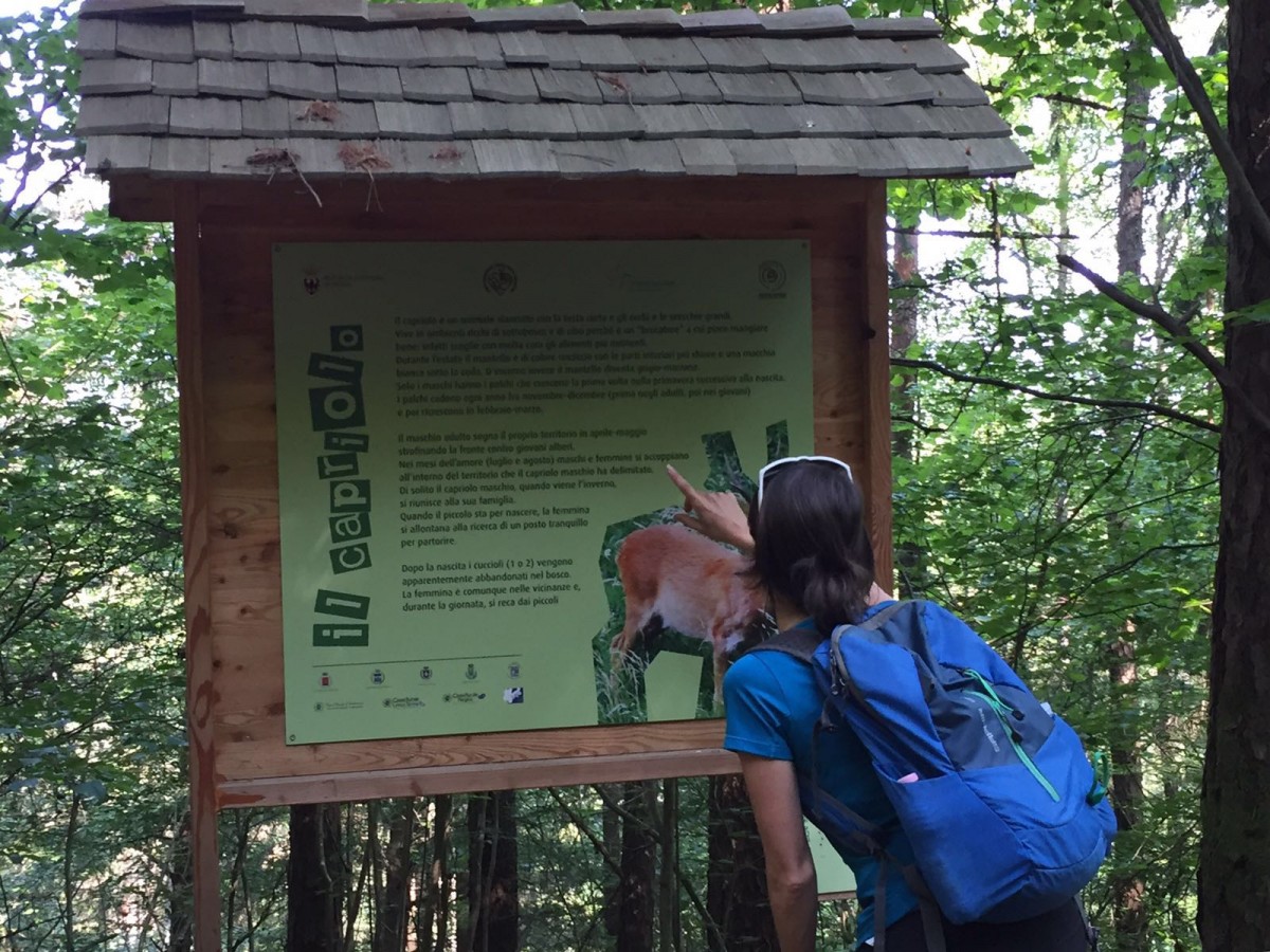 Impiegherete un’ora o poco più a salire fin lì: la strada forestale è per lunghi tratti immersa in un bellissimo bosco ed il percorso è piacevolmente costellato di grandi tabelle che raccontano gli animali che lo popolano, con mille curiosità.