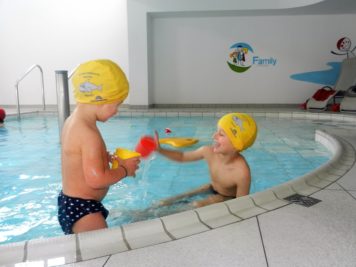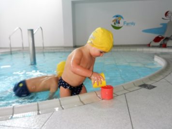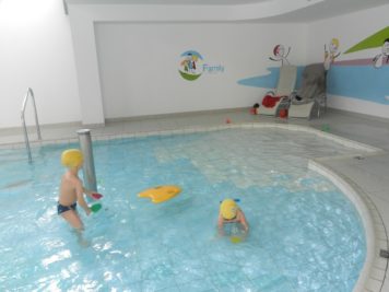 Anche la vasca per i più piccolini, con getto d’acqua centrale e profondità massima 30 centimetri, si trova in una posizione appartata. Qui i bambini possono sguazzare nell’acqua a 32 gradi in completa sicurezza, utilizzando anche qualche simpatico gioco messo a disposizione dalla piscina.