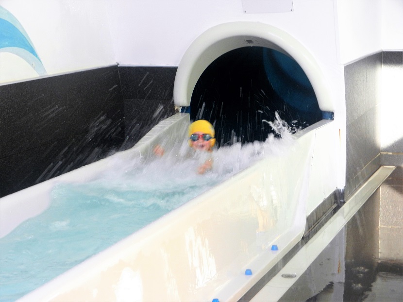 All’entrata troviamo subito la piscina dedicata ai nuotatori, lunga 25 metri, con 4 corsie e una temperatura di 28 gradi, ma… nemmeno il tempo di appoggiare borse ed asciugamani sulle comode sdraio che i bambini più grandi saranno già nella vasca ricreativa con idromassaggi, getti d’acqua e un divertentissimo vortice che trasporta i temerari da una parte all’altra della piscina.