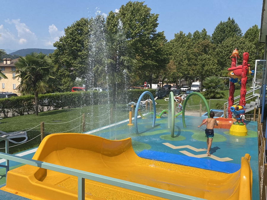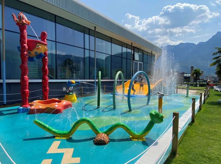 Siamo stati a provare il nuovissimo spray park della piscina comunale di Levico Terme. Si trova in piazza Dalla Chiesa, presso il centro polisportivo, con ampio parcheggio gratuito. All’interno troviamo una piscina da 25 metri per gli amanti del nuoto e la gettonata vasca benessere, usata sia per l’attività con i bambini che per le attività riabilitative, con una profondità massima di 1,20 metri. Al suo interno ci sono fontane rilassanti, idromassaggi e una confortevole temperatura di 34 gradi.