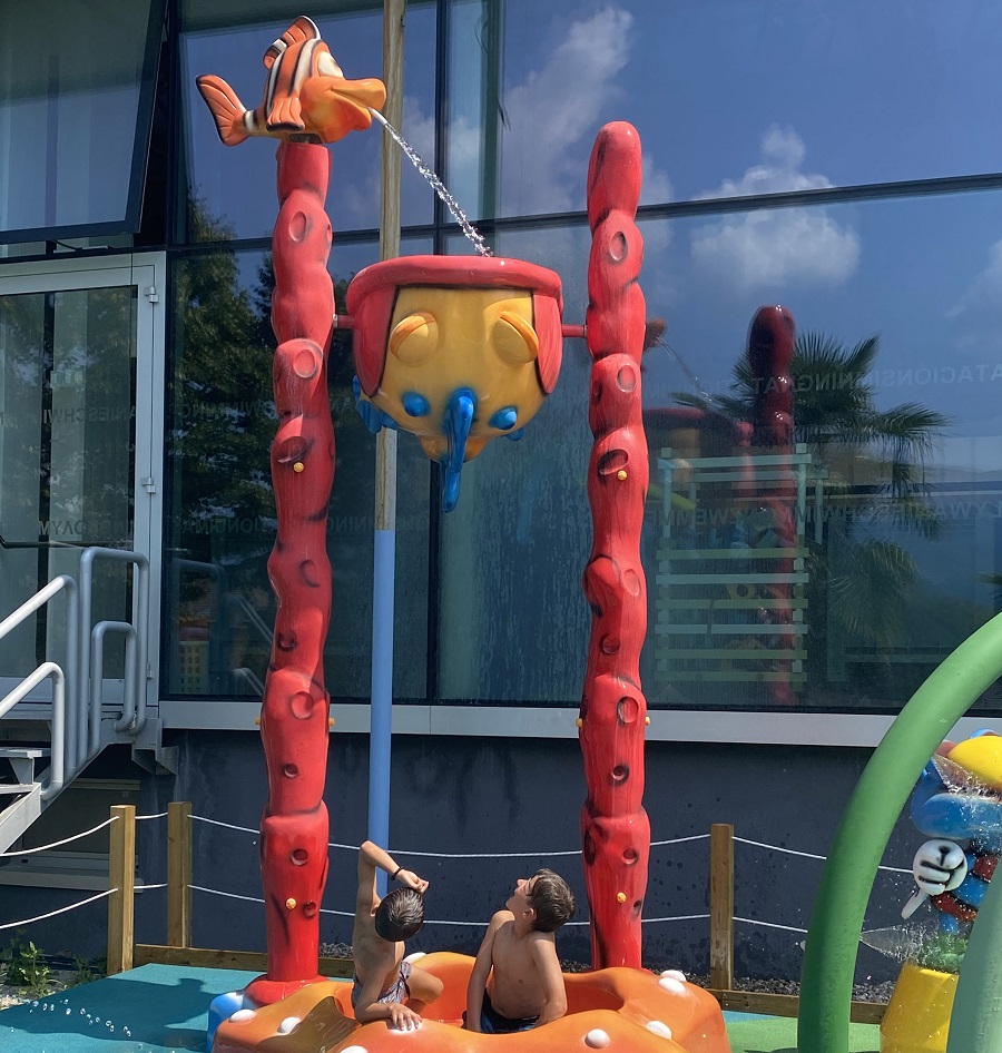 All’esterno invece nuovo spray park è situato all’ esterno e ha tanti giochi per il divertimento dei più piccoli.