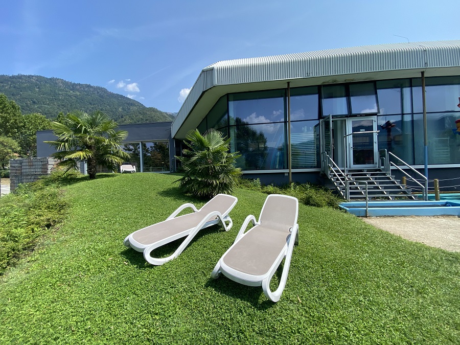 L’Aquaclub Valle del Chiese è altresì dotato di un grande prato esterno con palme ed altre piante mediterranee ed esotiche, per avere la sensazione di essere in una piccola oasi tropicale! Qui troverete tavoli, sdraio ed ombrelloni ma soprattutto la vasca ad idromassaggio (accessibile direttamente anche dall’interno) e una bella e rilassante piscina d’acqua tiepida.