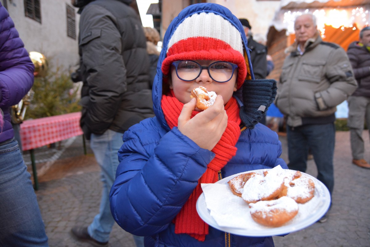 La tradizione trova spazio anche in cucina, dove vengono riproposti i piatti tipici di questo meraviglioso angolo di Trentino, con prodotti genuini e sapori gustosi, come la “carne salada e fasoi”, il piatto locale più caratteristico. Per riscaldarsi e stare in compagnia vi aspetta invece il caldo vin brulè. Da sorseggiare passeggiando tra i vicoli ammirando i giochi di luci ed ombre creati dall’illuminazione soffusa.