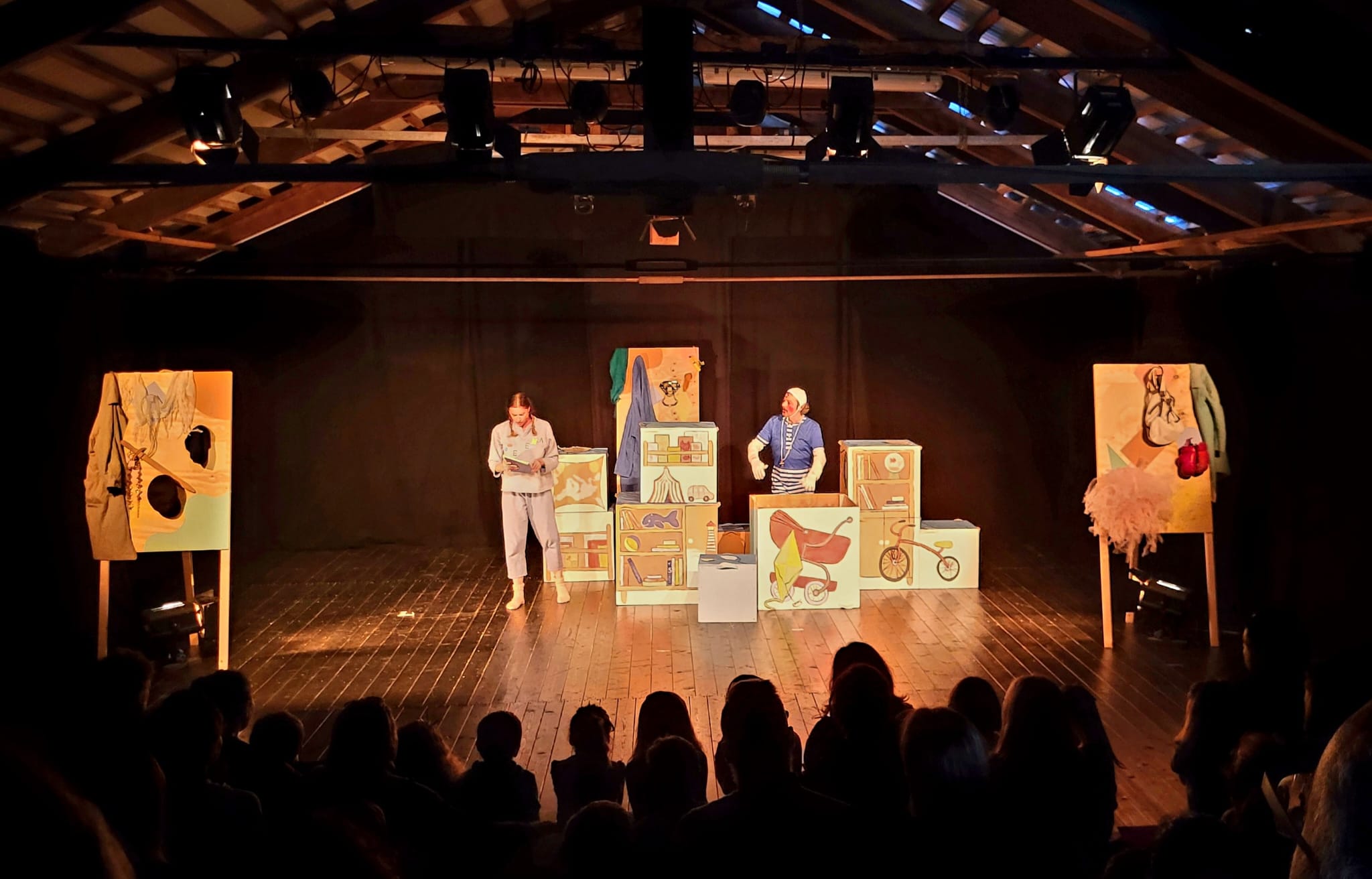 Affiatati, irriverenti (epica la scena, un po’ da grandi, delle coperte che si muovono vorticosamente), ridanciani, allegri, beffardi (evidente la presa in giro alla tipica dominanza della donna nella coppia, con la nonnina che obbliga il compagno a fare ciò che lei desidera), divertenti e con un’ottima sintonia su ciò che di bello riserva la vita: ridere insieme, divertirsi con i coriandoli, decorare la propria tana d’amore, viaggiare, cantare e, attenzione attenzione, ballare! Certo perché se domani andrete a vedere lo spettacolo domenicale rimarrete incantati dal potere che la musica ha in questo spettacolo e soprattutto dalla maestria con cui i due protagonisti riescono a mantenere un ritmo della narrazione, senza narrazione, proprio grazie alla musica. E che dire della performance cantata del nonnino? Super! Vi lasciamo la suspance del finale … vi sveliamo solo che oltre a loro sul palco compare una spettacolare palla da… discoteca. Il resto scopritelo voi!