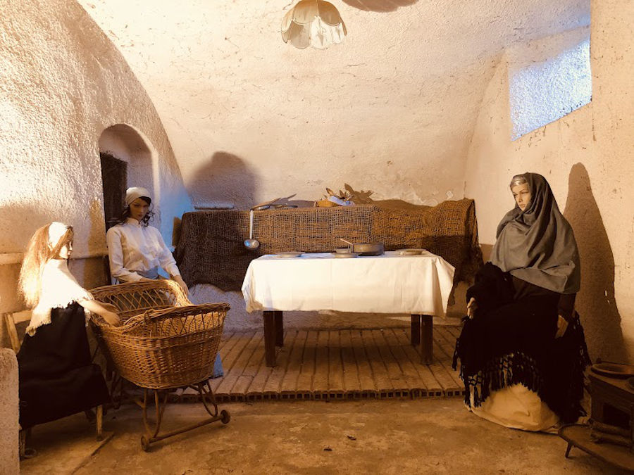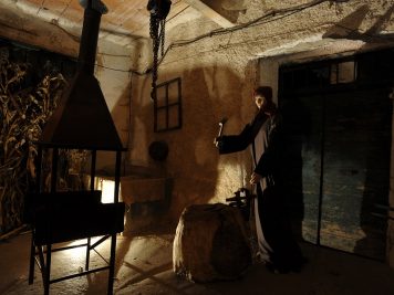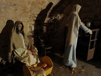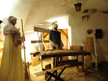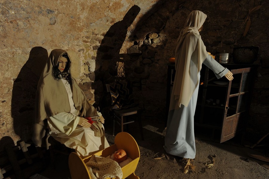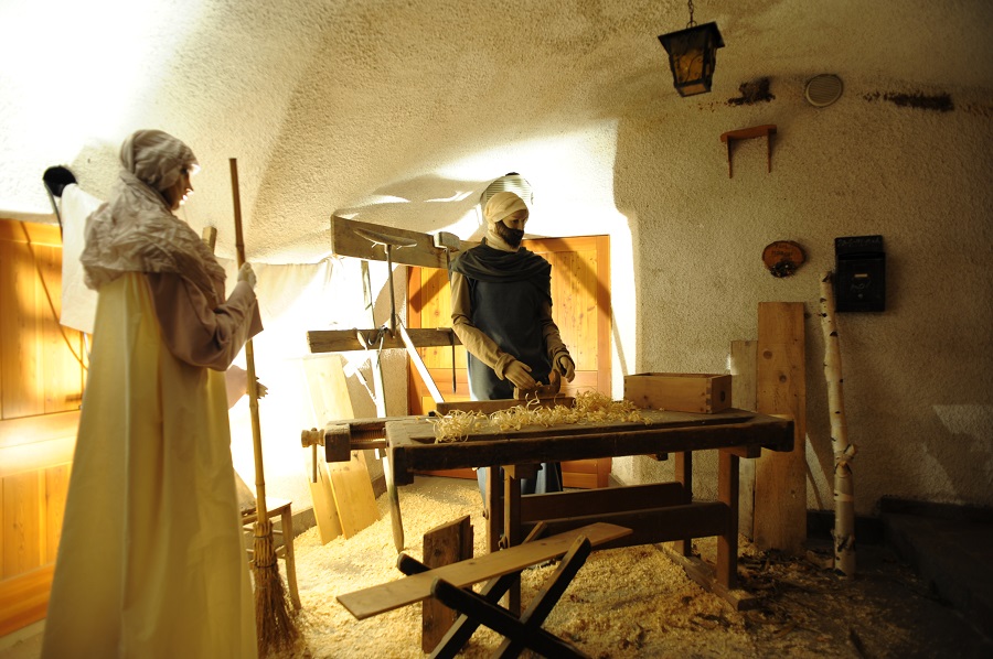 Tra le rappresentazioni: la cantina con gli uomini che lavorano il vino, la bottega del pane con il fornaio e le donne che comprano il pane, la stalla con la mucca e il suo vitello, il fabbro che batte il ferro, un’antica cucina con donne e bambini. Si avrà l’impressione di “entrare” nel presepe e scoprire passo dopo passo, angoli nascosti che si sviluppano attorno alla scena principale con la Sacra Famiglia.