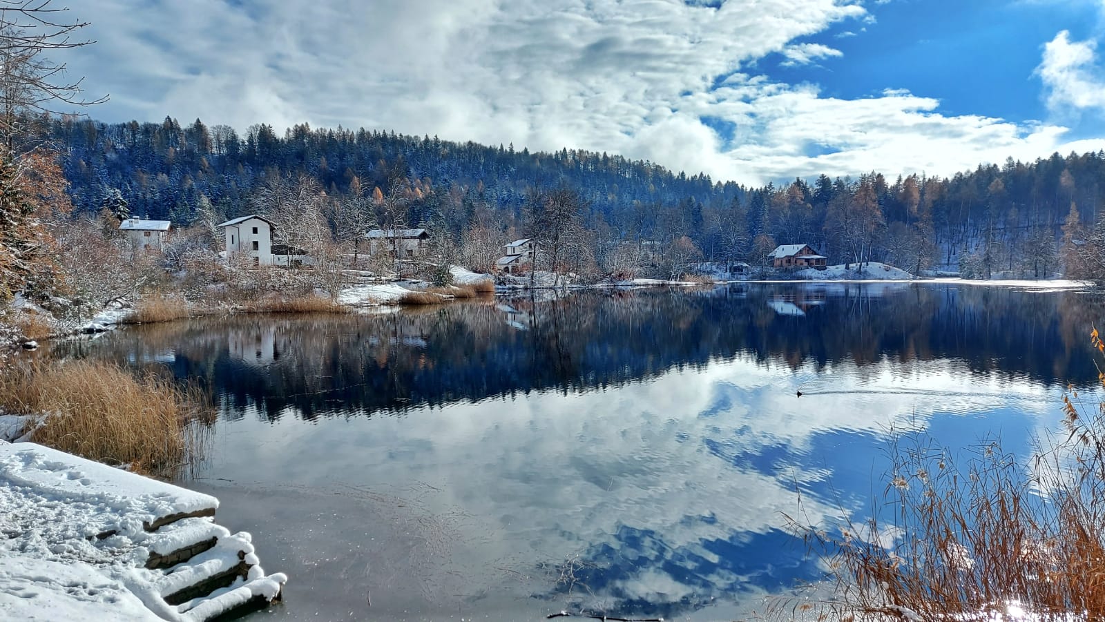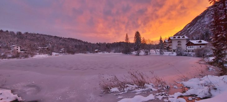 In alcuni tratti del percorso (soprattutto la seconda parte) c’è parecchia neve e si potrebbero utilizzare le ciaspole, ma è comunque percorribile con un buon scarponcino. Una volta arrivati a Malga Cimana (chiusa in questo periodo), ci si ritrova immersi in un ambiente dove regna una tranquillità assoluta.
