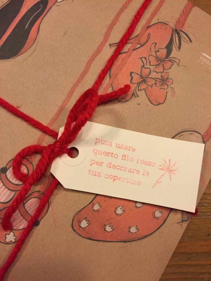 Il mio libro è arrivato l’altra mattina, per posta, quando ero febbricitante, bello, dolcioso con il suo filo di lana rossa che lo stringeva come un pacchettino e con l’invito a usare il filo per decorare la “mia copertina”. E’ stato subito amore. Sono volata a leggerlo, anche perché Lorenzo, in chat, mi aveva suggerito che le fiabe a volte guariscono un sacco di mali, chissà, ho pensato, che non possano guarire anche la mia sciocca febbre.