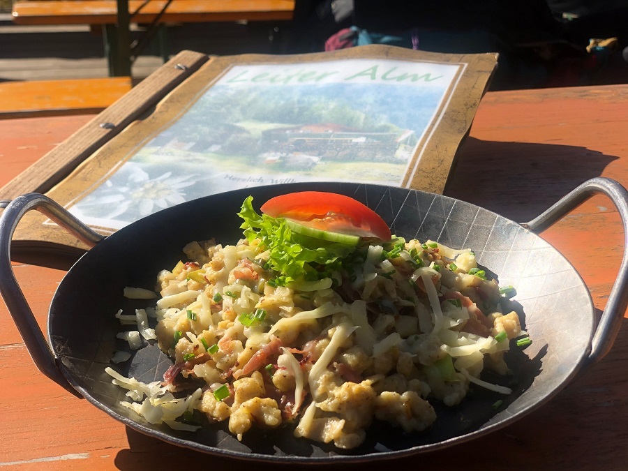 Molto carino anche il Ristorante Steinegger (a dieci minuti dall’arrivo della funivia, scalinata), con sabbierà, scivolo e altalena per bambini. panorama sempre notevole e profumino promettente.
