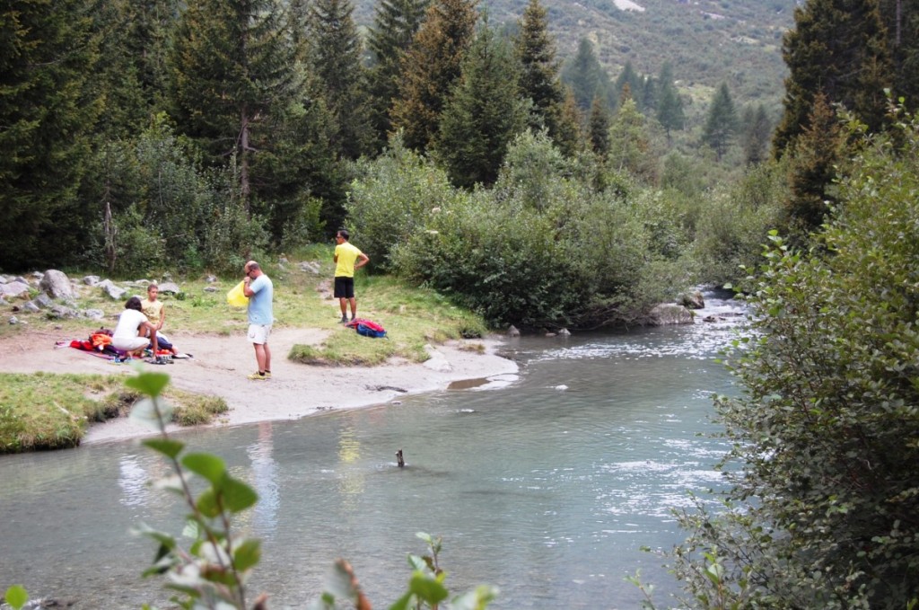 Ecco apparire un delizioso ponticello e un susseguirsi di spiaggette dove i bambini possono giocare con la sabbia e mettere i piedi nel torrente, compatibilmente con la temperatura dell’acqua, sicuramente bella fresca, dato che scende proprio dal ghiacciaio Presena!Risalendo il fiume sulla riva sinistra incontrerete altri ponti in legno, nuove spiagge, scorci suggestivi, fino ad arrivare dopo un’altra mezz’ora alla località alveo del Presena, una bella conca attorniata da montagne molto scenografiche, su tutte la Presanella con il suo ghiacciaio. Può essere una bella idea per le torride giornate estive, quando è difficile trovare un po’ di frescura se non salendo in quota.
