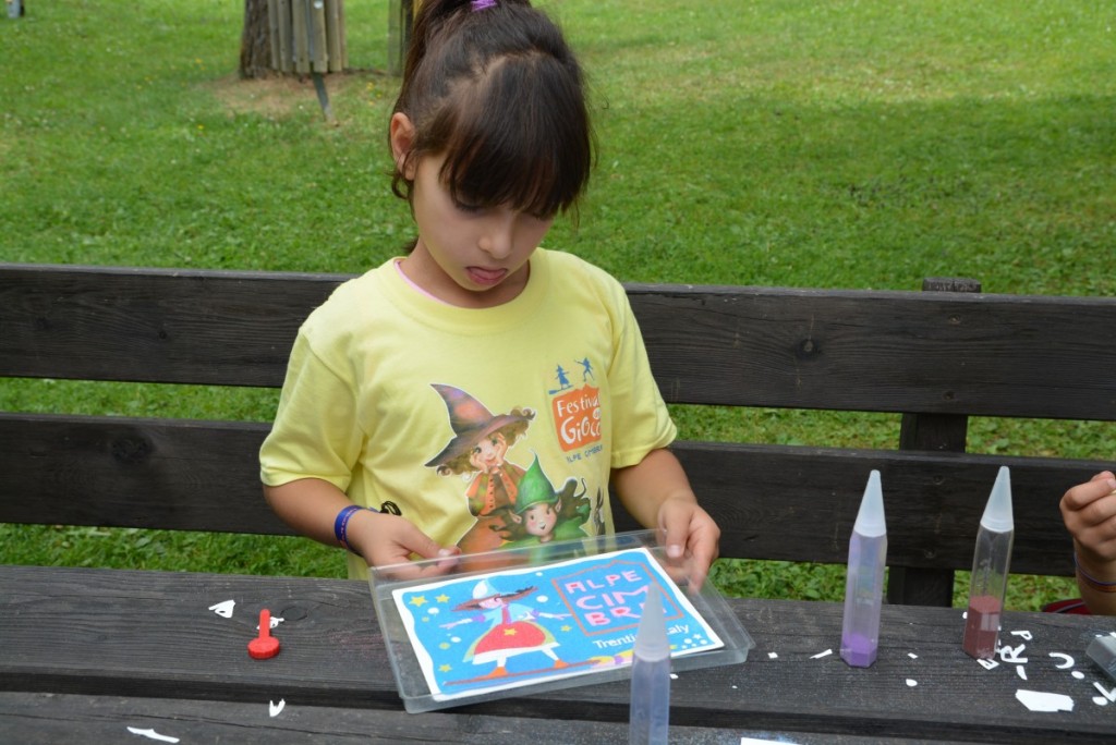 Di corsa attorno a un parco meraviglioso alla ricerca di indizi molto speciali: le foglie di alberi e piante che crescono sull’Alpe Cimbra, tra un sacco di bambini, nonne e zie alla valorosa guida di squadre dai nomi bizzarri: ciliegia, cimbrini e naturalmente la super squadra de Il Trentino dei Bambini. Formazione: Timothy, Sophie, Alex, nonna di Alex e ovviamente io. Fischio di inizio e via! Ma non immaginatevi una partitona di calcio, piuttosto una super caccia al tesoro tutta “green”, una delle tante e bellissime attività del Festival del Gioco. Sì perchè ieri, finalmente, siamo riusciti a fare un salto proprio sull’Alpe, precisamente a Lavarone e a Carbonare, due dei tanti punti di riferimento per le attività di questo festival. Teatro della nostra caccia al tesoro un parco strepitoso, che abbiamo già avuto modo di presentarvi: il Parco Palù. Non sto a dirvi che già il luogo e tutti i suoi servizi (tra cui degna di nota l’altalena per disabili), fa guadagnare mille punti a qualsiasi attività che lo interessi, vi dico invece che gli operatori del festival sono stati gentilissimi e soprattutto molto competenti e che ci hanno consegnato il bellissimo kit e hanno fatto in modo che la mattinata trascorresse in modo libero ma con un unico fil rouge. Di corsa tra il verde del parco abbiamo imparato tante cose nuove sulle piante, non abbiamo vinto, ma siamo saliti sul podio e sabato Alex e la nonna, nostri valorosi compagni di avventura, presenzieranno alla premiazione durante la festa di premiazione, alle 18:30 al Centro Congressi di Lavarone. Noi non ci potremmo essere, ma ci sentiamo già premiati con l’allegria di questa caccia al tesoro. Il kit, composto da sacca, maglietta, occhiali, l’indispensabile braccialetto, il libro delle leggende dell’Alpe e tanti altri gadget, si ritira a iscrizione avvenuta (che costa 30€) e accompagna i bimbi in tutte le avventure di questo festival, punteggiando tutta l’Alpe di colore giallo e arancione, i colori di questa edizione. E ci raccontano che martedì a far divertire i bambini c’erano niente poco di meno che le Winx! Musica, laboratori, balli e festa con queste beniamine fatate dei bambini. L’aurea fatata si respira durante tutta la settimana del festival in realtà: si possono percorrere sentieri tematici (Sentiero dell’Immaginario, quello Dalla Storia alle Storie o quello delle Pozioni) e tutto l’evento è incentrato sulla storia della streghetta Perti e dei suoi amici che l’aiutano a realizzare il suo più grande sogno, quello di volare. Noi non abbiamo volato in effetti ieri, ma la nostra fantasia sì e anche con il bel momento al parco di Carbonare, durante il quale tra il vocio di un sacco di bimbi abbiamo colorato con i mitici Sabbiarelli i disegni realizzati appositamente per il festival e visto un altro bel parco giochi della zona. In fondo questo festival ha proprio l’intento di portare gli ospiti a visitare le zone di tutta l’Alpe Cimbre, da quelle più note a quelle meno conosciute. Così si può arrivare ad ascoltare bellissime leggende attorno a un emblema di Lavarone: l’Avéz del Prinzep, che ha 220 anni e non solo è l’abete bianco più grande d’Europa dall’alto dei suoi 54 metri di altezza e con i suoi quattro metri di circonferenza, ma è anche custode di storie fantastiche che si narrano intorno al suo fusto regalando ai bambini una magia vera (situato non lontano dal biotopo della malga Laghetto, nell’area di Monterover).