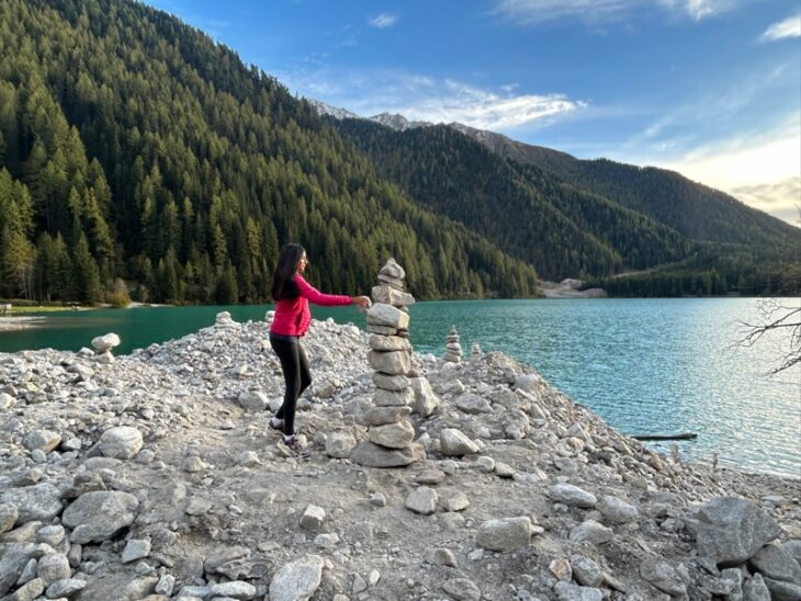 Se arrivate dopo le 16.30 c’è ancora tempo per percorrere almeno un pezzetto del giro: noi dal parco giochi del Platzl am See abbiamo completato circa metà giro camminando verso destra, imbattendoci negli omini di pietra e in alcuni dei cartelloni.