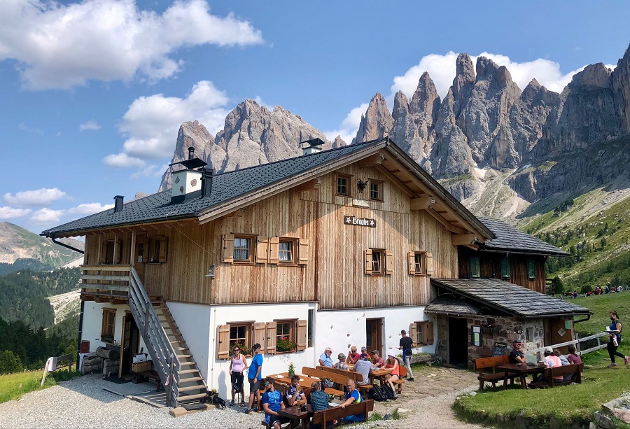 Ripercorriamo la strada dell’andata prendendo la funicolare. Abbiamo visto che ci sarebbe la possibilità di scendere a valle sul sentiero 5 attraverso la val Cuecenes e poi lungo la Val d’Anna sino ad Ortisei ma questo sentiero è consigliato anche per le mountain bike e visto il dislivello di 800 metri preferiamo rientrare comodi e senza la paura di vedersi sfrecciare biciclette all’improvviso.
