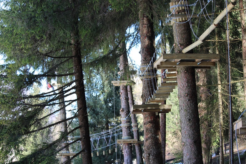 Il parco avvolge come in un grande abbraccio il centro utilizzando tutti (o quasi) gli alberi che sono presenti nell’area giochi e in più ospita una bellissima struttura su pali artificiali, per accontentare anche i più piccoli che dai 5 anni, seppur con giochi facili, possono provare grande soddisfazione in totale sicurezza.