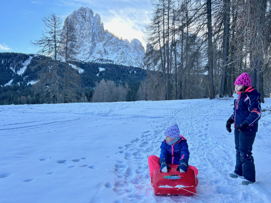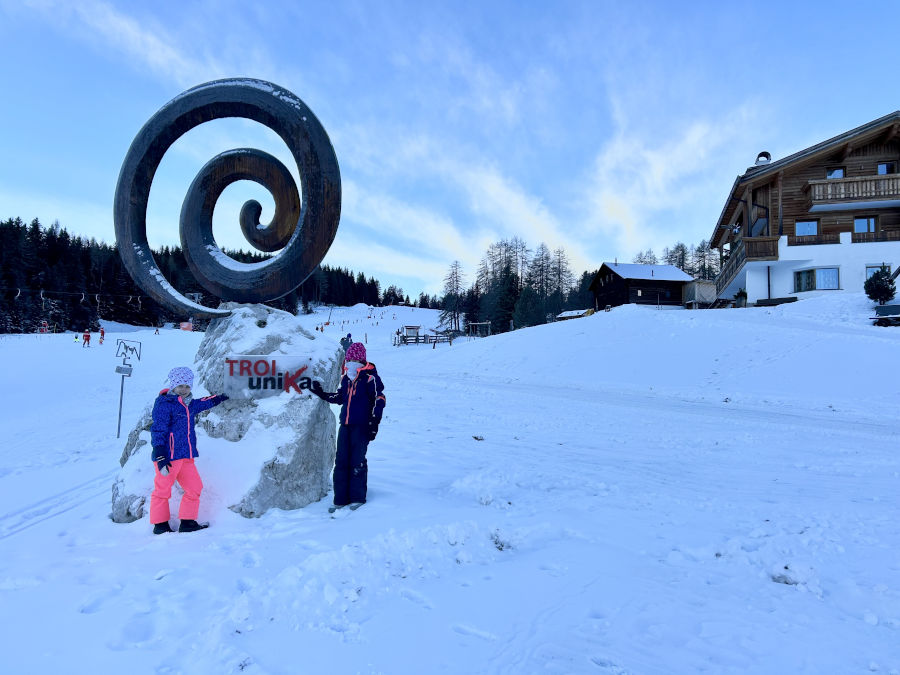 Se vi trovate in Val Gardena d’inverno, che siate sciatori o meno, vi consigliamo di raggiungere il Monte Pana a quota 1.670 metri. Si arriva facilmente da Santa Cristina sia in auto che in seggiovia (QUI info e orari). A monte troverete diverse possibilità: piste da sci, centro fondo, escursioni nella neve, campo scuola e discese per bob e slitte. Noi abbiamo deciso di percorrere il sentiero Troi Unika.