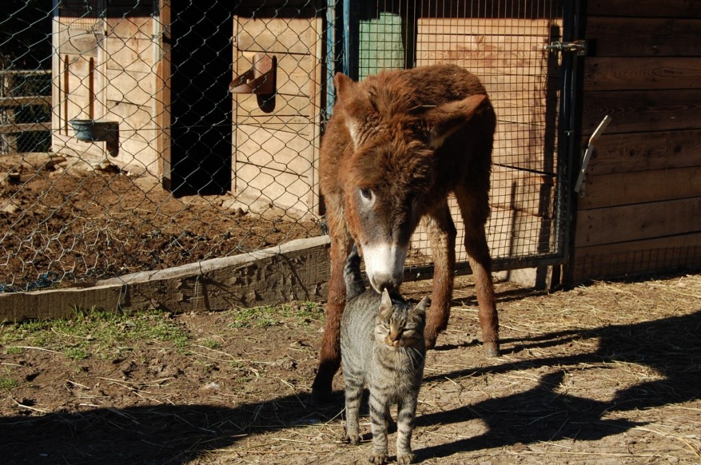 E’ stata poi la volta delle quaglie, con Leonella che ci spiegava tutte le caratteristiche di ogni animale, la loro storia, i loro nomi. Qui ce ne sono davvero tantissimi e uno più particolare dell’altro. E che scene! Guardate che amicizia tra questo gatto e quest’asino!
