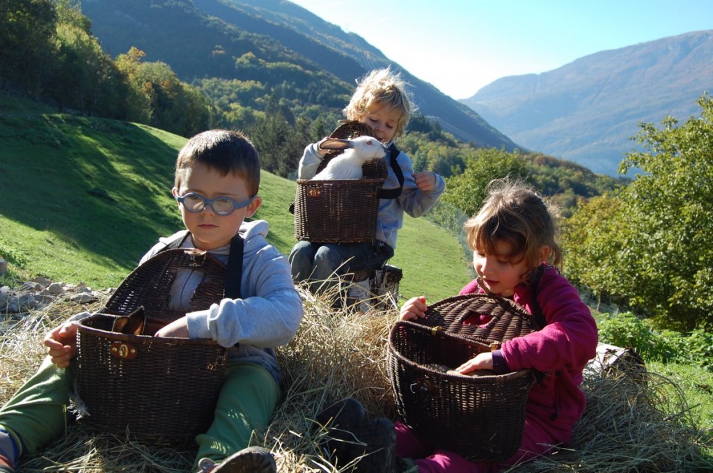 La prima emozionante esperienza è stata indossare al collo una speciale cesta dove accogliere ognuno un coniglietto. Un bel modo per tenerlo in sicurezza ed accarezzarlo nei tempi ritenuti più opportuni senza farsi prendere dalla paura (i nostri ne avevano ben poca!).