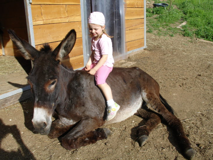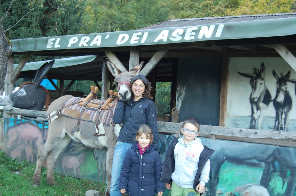 Qualche tempo fa siamo stati a conoscere Leonella, l’anima di quella fantastica realtà che è “El Prà dei Aseni”, la fattoria che si trova a Baselga del Bondone (un quarto d’ora da Trento città) e precisamente in località Doss delle Giare (chiedete una volta arrivati al paese, è la cosa più semplice). Parcheggiata la macchina in un bel punto panoramico sulla Valle dei Laghi, ecco i bimbi pronti a cinque minuti di passeggiata per conoscere tanti nuovi amici.