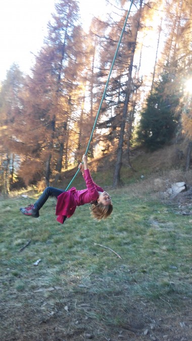In più si incontra sulla strada un’altalena appesa all’altro ramo di un albero. Presente Heidi e la sua altalena legata alle nuvole? Uguale!