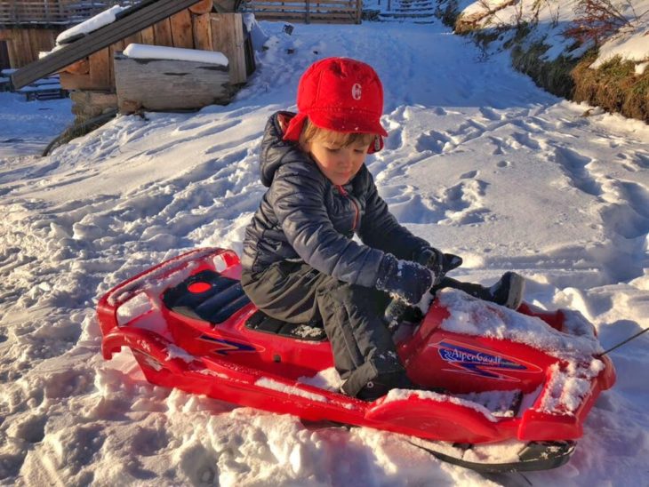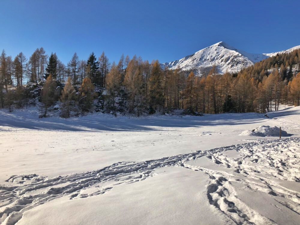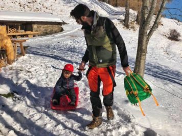 La passeggiata è piuttosto in salita e dura una mezz’oretta, i bambini la adoreranno perché, arrampicarsi nel bosco è sempre un’esperienza meravigliosa. Usciti dal bosco il panorama si apre e il rifugio Serot è proprio li, incastonato tra le montagne e dallo splendido paesaggio invernale che lo circonda.