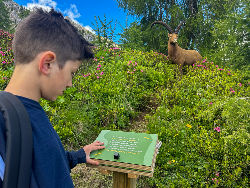 Dall’arrivo della telecabina in località Le Cune (2200 metri) parte invece il Sentiero degli animali che scende fino allo Chalet Valbona, con dei passaggi caratteristici nel bosco. Individuando le sagome e le installazioni di ungulati, mammiferi ed insetti giganti potrete scoprire le loro caratteristiche, grazie a simpatici giochi e indovinelli.