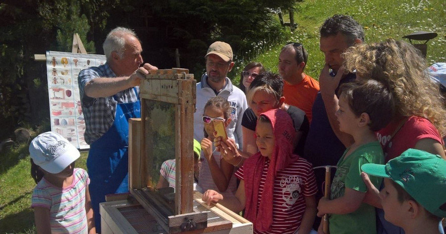 Noi abbiamo provato l’attività a tema api! Dopo una piacevole passeggiata nel bosco, in compagnia di un’accompagnatore di media montagna, siamo arrivati alla baita di nonno Raimondo. Che ci ha svelato tante curiosità sulle api, mostrato i suoi alveari e fatto assaggiare il suo buonissimo miele!