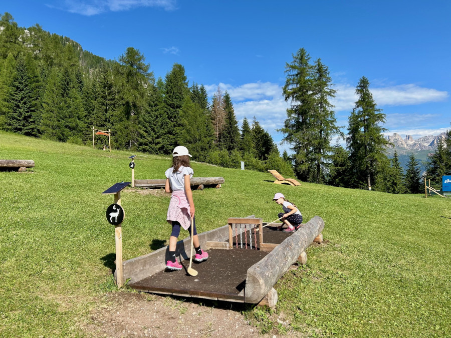 .. e il nuovo minigolf con le mazze in legno. Poco distante c’è anche una piccola fattoria con galline, conigli, asini, caprette e pecore.