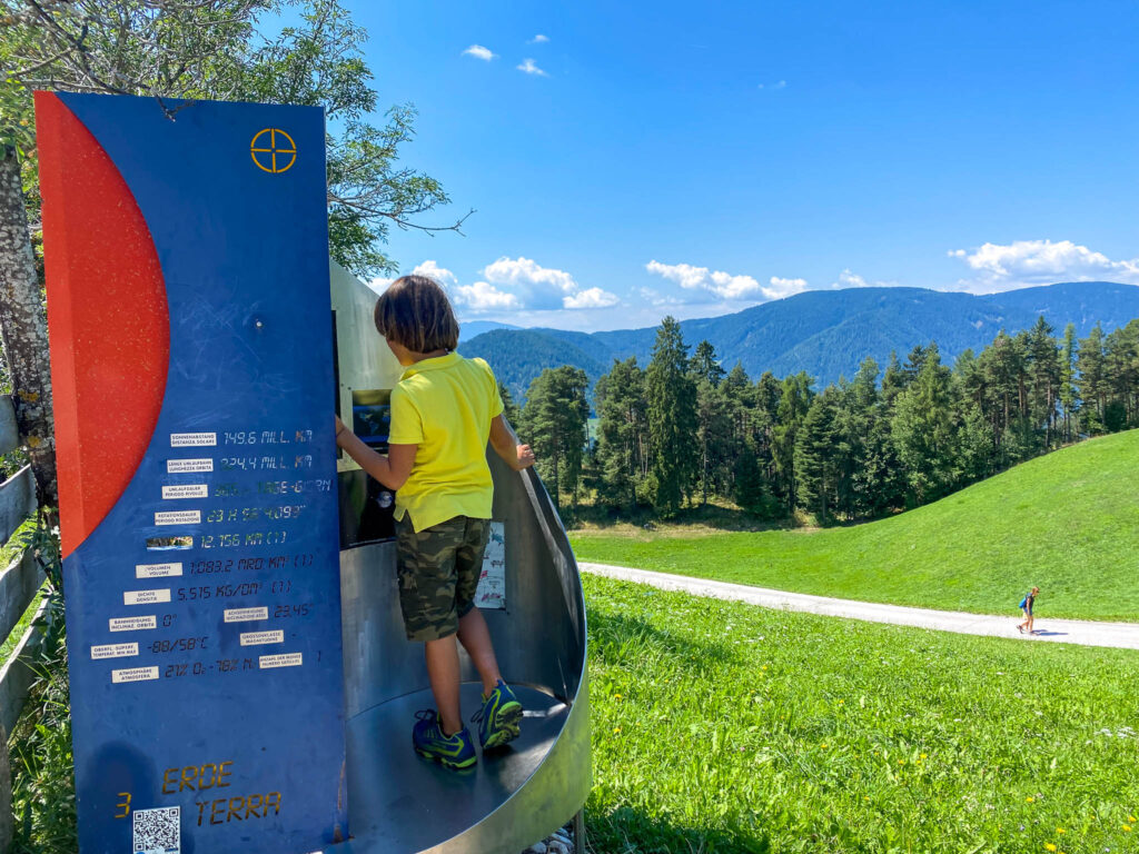 A pochi chilometri di distanza dal Planetarium Alto Adige (un vero e proprio simulatore stellare con un ampio programma di spettacoli e attività dedicate alle famiglie), si trova il Sentiero dei Pianeti, una semplice passeggiata che si sviluppa lungo un percorso circolare a circa 1400 metri. Tra ampi prati, semplici sentieri nel bosco e in alcuni tratti su comode strade asfaltate.