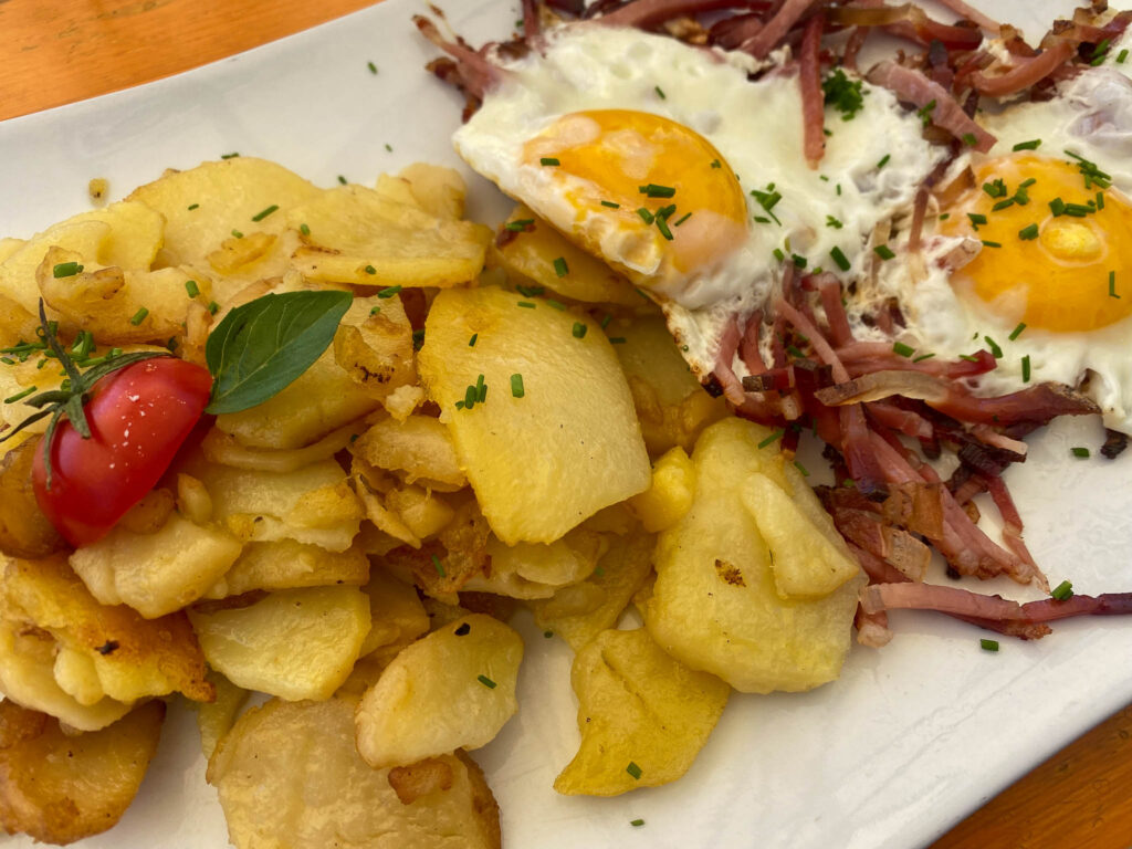 Tris di canederli deliziosi e il classico piatto speck, uova e patate che non delude mai.