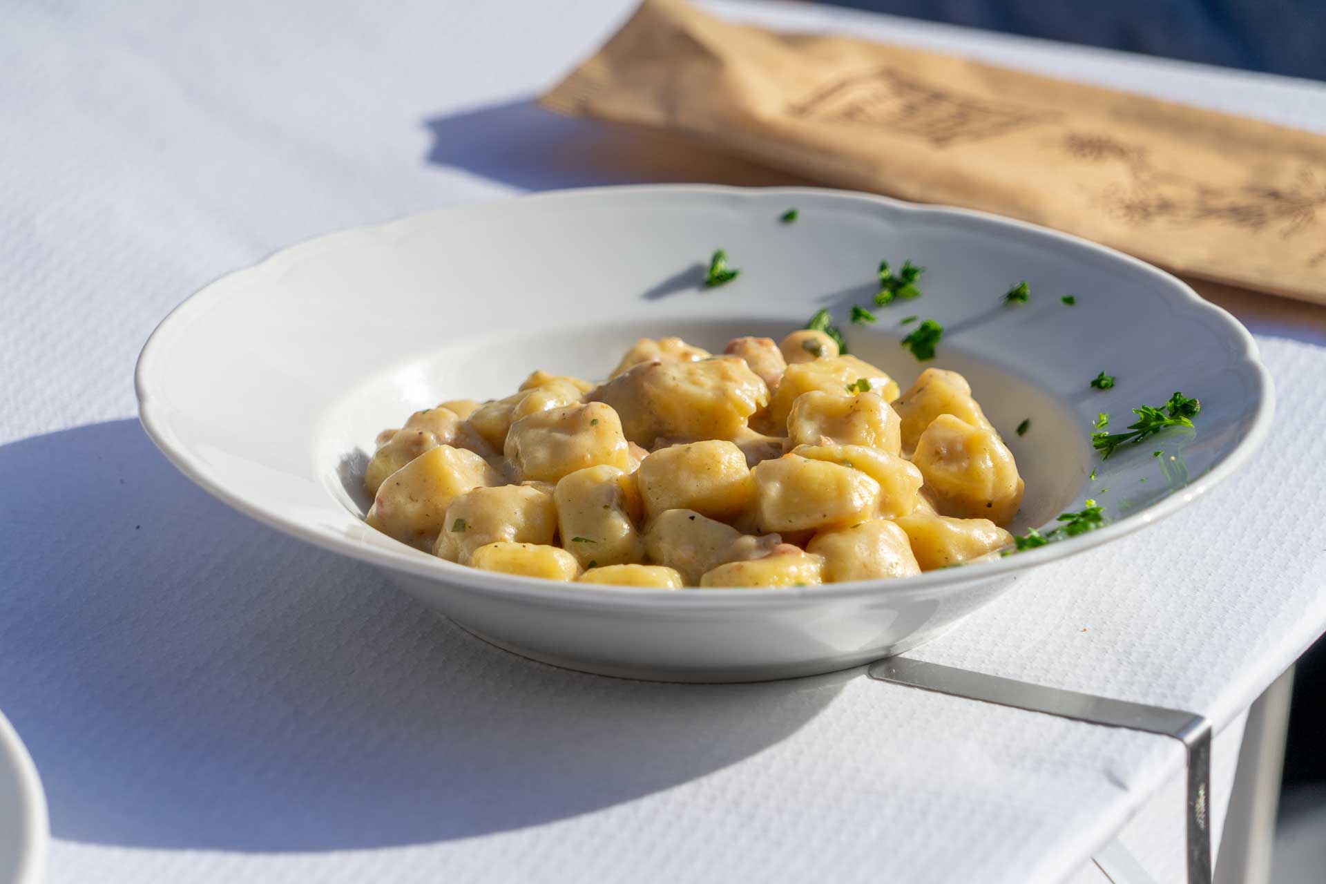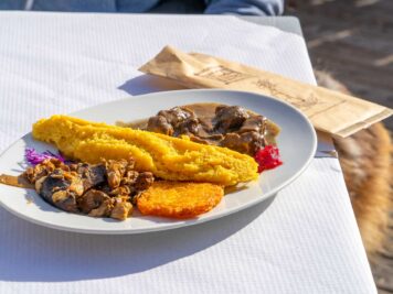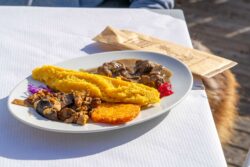 Noi abbiamo mangiato un ottimo tagliere di formaggi di malga, degli gnocchetti con il ragù di cervo e un piatto con funghi, spezzatino di cervo e polenta realizzata con una miscela di ben tre farine, tutte rigorosamente trentine e cotta sulla stufa a legna nel paiolo di rame. Un piatto da non perdere è sicuramente il formaggio fritto, la cui ricetta è stata tramandata di generazione in generazione.