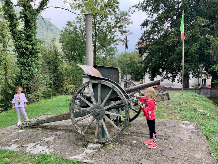 Con grande interesse e curiosità ci siamo lasciati guidare dalle bimbe. Esplora un tunnel e un altro ancora eccoci arrivare alla chiesa. Dietro scorgiamo un vero e proprio cannone posto vicino al monumento che ricorda Garibaldi. Un sentiero ricco di emozioni e di ricordi. Percorrerlo con i bambini è un modo “semplice ” per affrontare temi importanti come la guerra. Inoltre attraversando le gallerie si può guardare attraverso le fessure nel muro e immaginare i soldati…