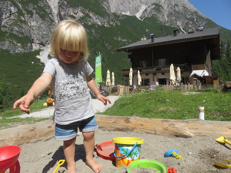 Come ogni rifugio altoatesino che si rispetti anche al Rifugio Tre Scarperi abbiamo trovato una bella area giochi esterna. Qui Bianca si è divertita un mondo a giocare nella sabbiera, sugli scivoli e a dondolarsi sulle altalene. Per i grandi non manca neppure una comoda amaca per respirare l’aria di montagna in pieno relax…
