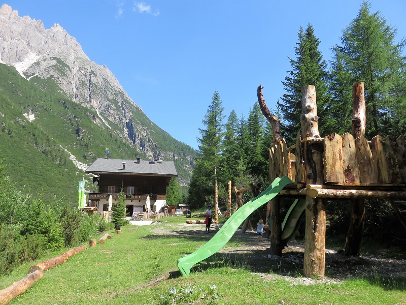 La nostra meta è un rifugio altrettanto spettacolare: stiamo parlando del rifugio Tre Scarperi, punto di partenza per gli escursionisti più esperti che vogliono raggiungere quote più elevate con trekking più impegnativi. Noi con i nostri bambini al seguito ci accontentiamo invece di raggiungere questo bel posto per rilassarci, godere dell’ottima cucina e giocare un po’ all’aria aperta. Tra l’altro l’itinerario è adatto anche ad essere percorso con passeggini da trekking, quindi: avanti tutta!