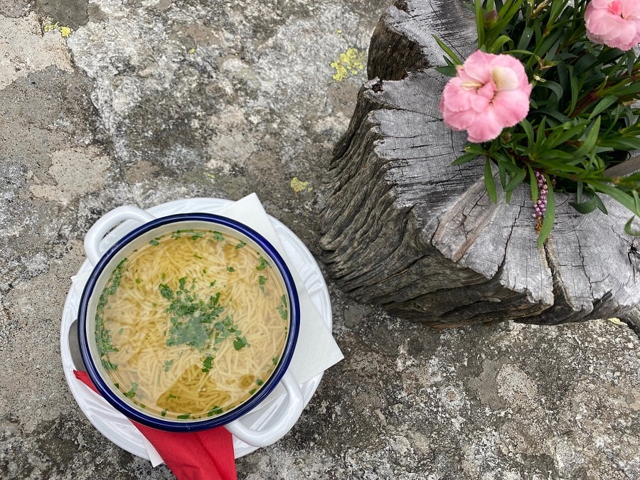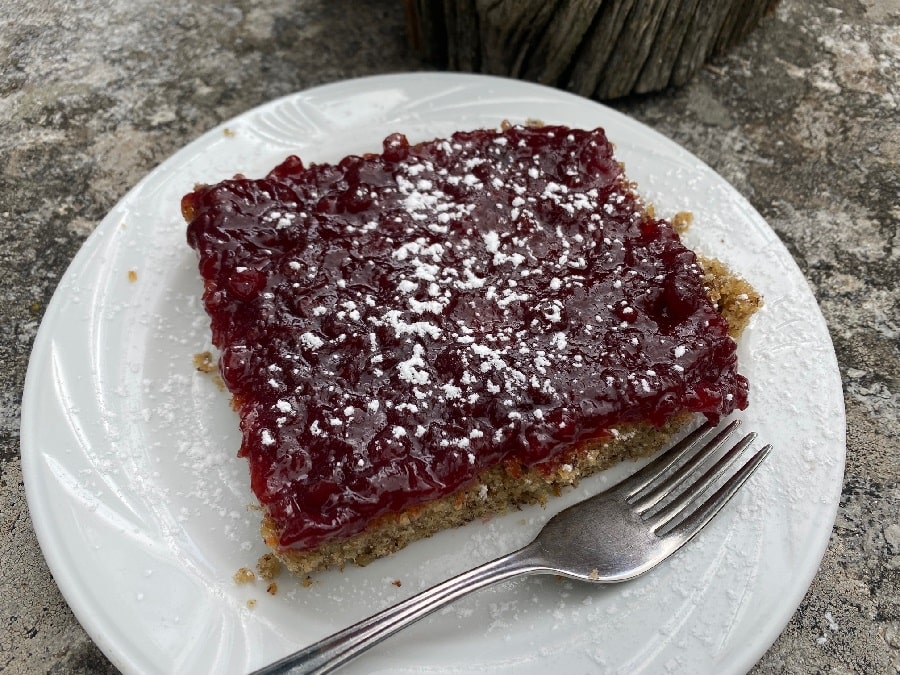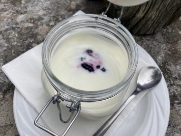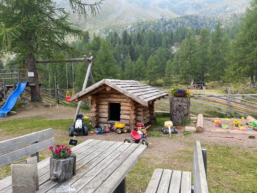 Qui vi aspettano le classiche pietanze altoatesine: taglieri misti, minestra d’orzo, canederli in brodo o con insalata di cavolo cappuccio, uova, speck e patate arrostite; e poi kaiserschmaren e dolci vari: noi abbiamo provato una torta di grano saraceno gigante e lo yogurt fresco con i frutti di bosco.