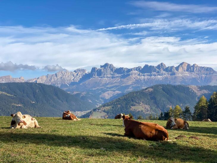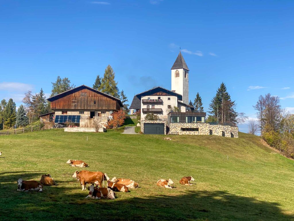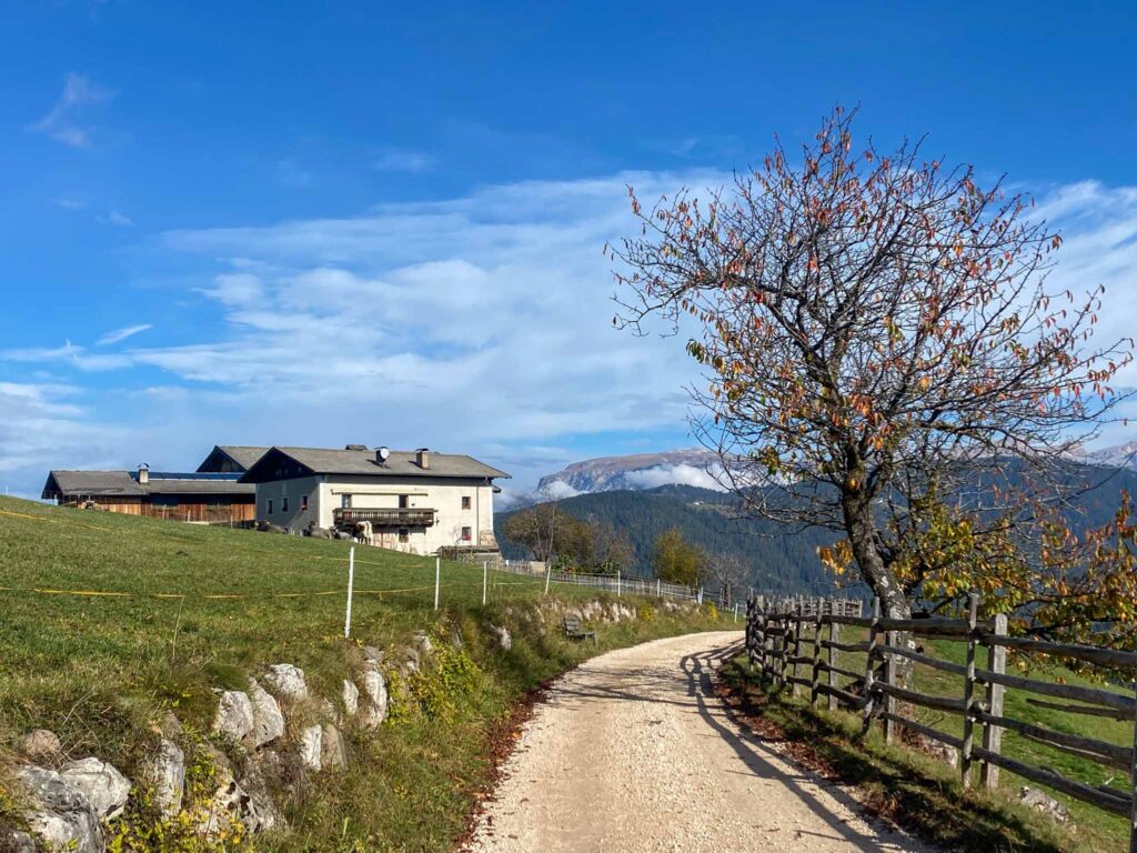 Camminerete attraversando i masi contadini del posto, intatti nella loro autenticità. Non mancheranno trattori, lavoratori nei campi, animali al pascolo anche in autunno inoltrato. Noi a fine ottobre abbiamo incontrato asini e mucche, placide e sornione.