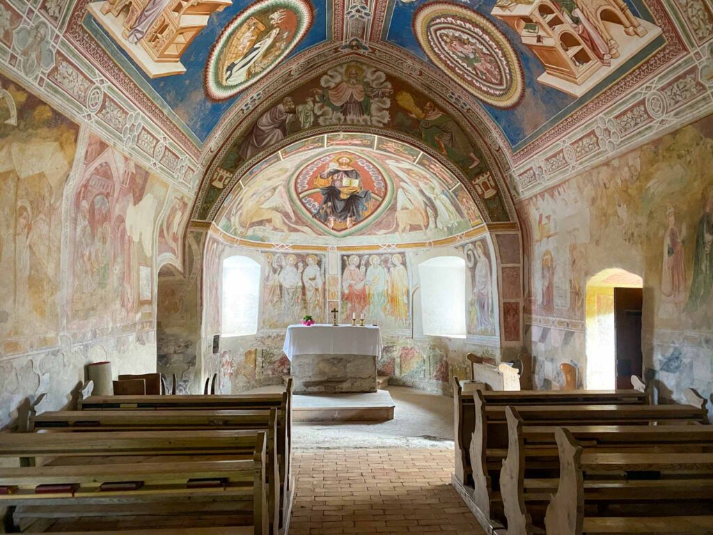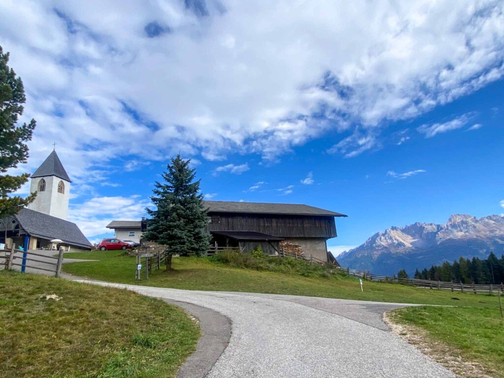 Questa chiesa è tra quelle di montagna con la posizione più bella, con Catinaccio, Pale di San Martino e Latemar a farle da sfondo. Chiesa e maso hanno radici antiche: vengono menzionati addirittura nel 1300. All’importanza storica e religiosa della chiesetta va aggiunto il valore dei suoi affreschi, preziosa testimonianza del gotico del primo Quattrocento in provincia.