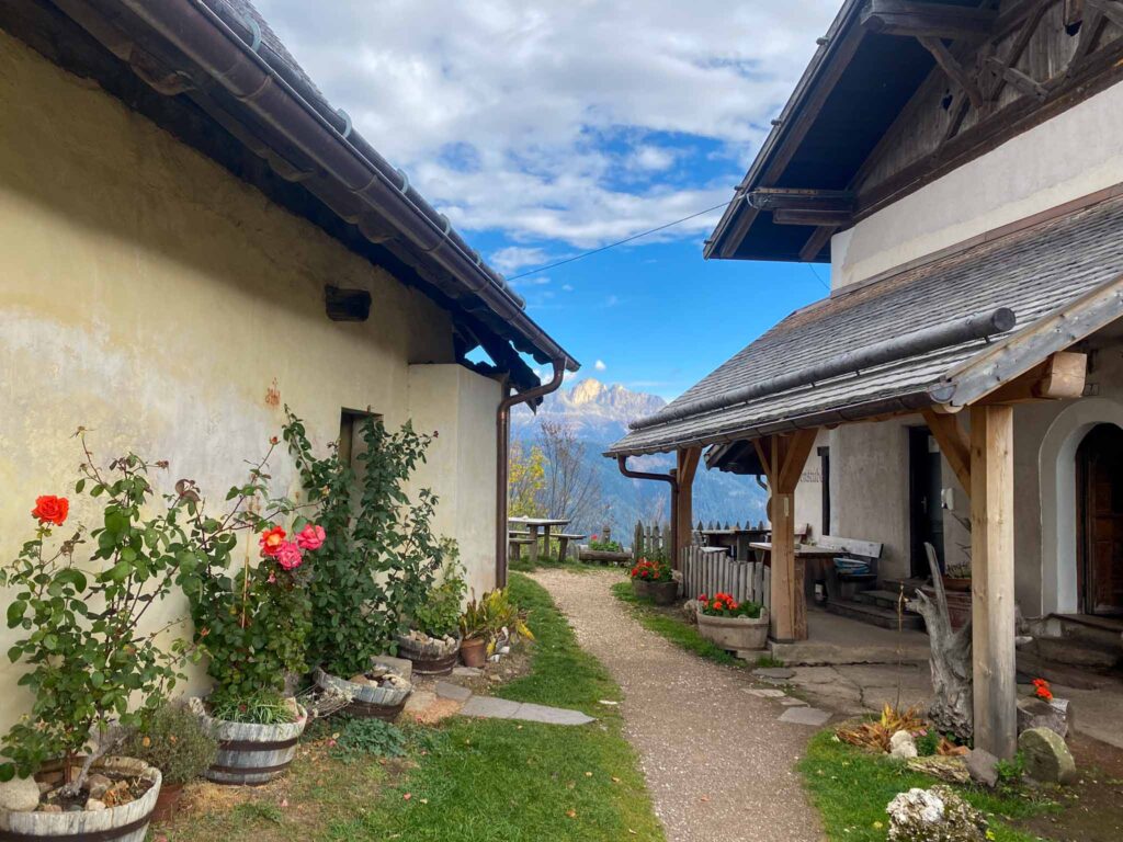 Proprio attaccata si trova la trattoria Kreuzhof, detta anche Lien Hof: maso Sant’Elena. Qui l’atmosfera sembra essersi fermata parecchio tempo fa, anche se è tutto curato nei dettagli. Belle le tavole in legno sotto il porticato, così come quelle con vista sulle montagne. Poi ci sono altri tavoli sparsi qui e là… se arrivate nel weekend e soprattutto dopo l’effetto “Trentino dei bambini” meglio arrivare un po’ presto. Qualche tavolo è disponibile anche all’interno, con le vetrate che danno sul panorama circostante.